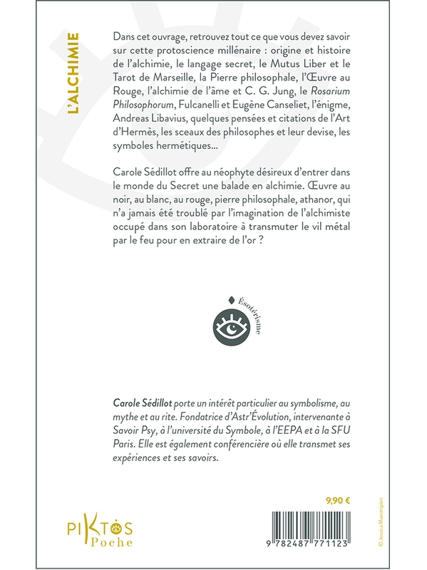 Dans cet ouvrage, retrouvez tout ce que vous devez savoir sur cette protoscience millénaire : origine et histoire de l’alchimie, le langage secret, le Mutus Liber et le Tarot de Marseille, la Pierre philosophale, l’◊uvre au Rouge, l’alchimie de l’âme et C. G. Jung, le Rosarium Philosophorum, Fulcanelli et Eugène Canseliet, l’énigme, Andreas Libavius, quelques pensées et citations de l’Art d’Hermès, les sceaux des philosophes et leur devise, les symboles hermétiques… Carole Sédillot offre au néophyte désireux d’entrer dans le monde du Secret une balade en alchimie. ◊uvre au noir, au blanc, au rouge, pierre philosophale, athanor, qui n’a jamais été troublé par l’imagination de l’alchimiste occupé dans son laboratoire à transmuter le vil métal par le feu pour en extraire de l’or ?